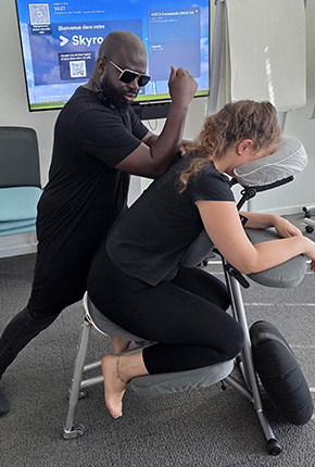 Le massage se fait habillé, sans huile. Les collaborateurs n’ont rien à prévoir, juste à profiter de leur pause bien-être.